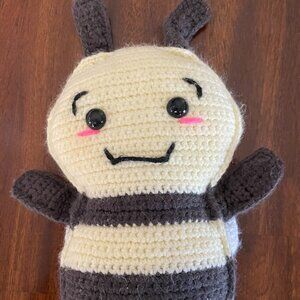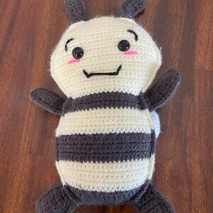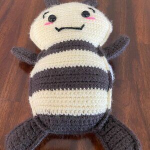 Crochet Handmade Bumble Bee Plush Mini Throw Pillow Yellow Black 11" Tall