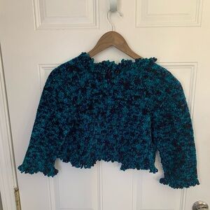 Blue and purple handmade crochet cropped sweater with a raw edge. Please see measurements!