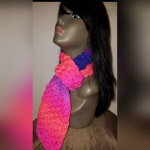 Woman's crochet ombre (pink, purple, and peach basket weave hat and scarf set.