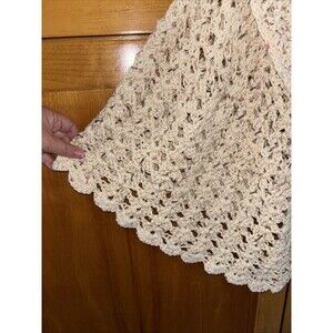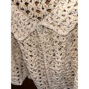 Cape shawl cover up one button closure collared open confetti knit ivory cotton? Hand wash pit to pit 22 length 17 one size can be worn as a cover up skirt scalloped hem