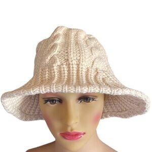 Crochet Knit Bucket Hat Solid Color Beige Size Fits 22.05-22.83” NWT Neutral