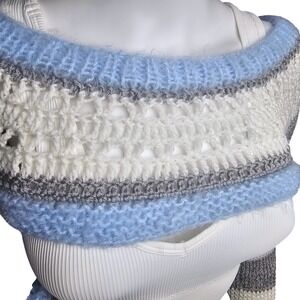 Crochet Knit Shrug Bolero Arm Warmers Sleeve Top Striped Blue White Gray