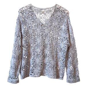 Crochet Lace Cardigan Size Petite XL Cotton Summer Coastal Grandma Beach Cottage