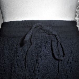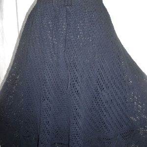 Very pretty pure cotton crochet lace, navy blue swing skirt by Biographie. Lined with a light-weight cotton. Has a comfie cinched elastic waist with a drawstring feature as well. Great, clean shape with no stains, fading, holes or damage. Sized Large:
