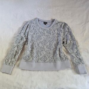 Crochet Lace Puff Sleeve Sweatshirt Women's Large Light Gray