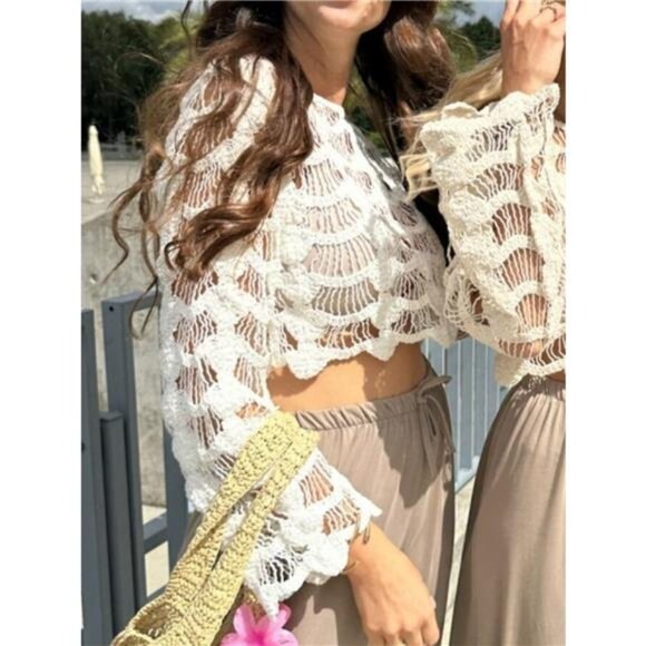 Crochet Long Sleeve Knit Cover Up