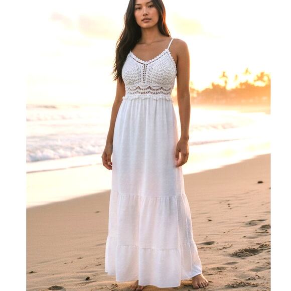 Crochet Midi Baby Doll Halter Dress Y2K Fairy White Shein Textured Tiered SZ SM