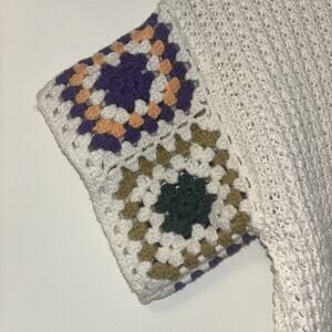This crochet multicolor granny square sweater in size XS features a unique open-knit design with flutter sleeves and a V-neckline, perfect for a festival or casual occasion. Made from cotton, this sweater follows the cottagecore and Bohemian themes, adding a touch of whimsy to any outfit. With adjustable features and a colorful design, this sweater is a standout piece for women looking to make a statement with their clothing.
