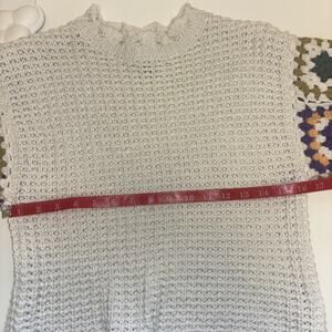 Crochet Multicolor Granny Square Sz Xs Sweater Flutter Short Sleeve Afghan Funky
