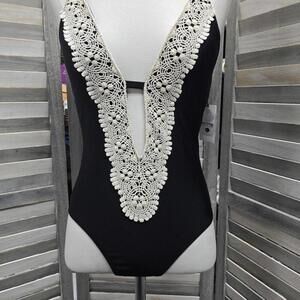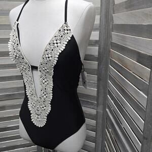 Crochet Necklace Plunge One Piece Swimsuit | Shade & Shore | Small (4/6)