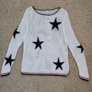 Crochet Open Knit Red White Blue Star Long Sleeve Cover Up Top