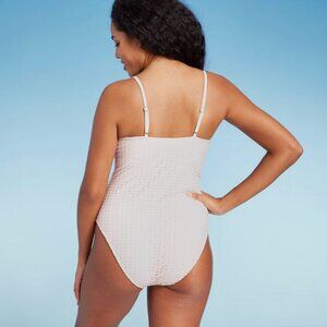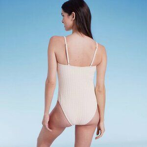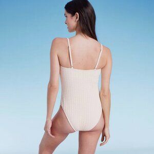 Women's Crochet Oval Ring Strap Detail Bandeau One Piece Swimsuit - Shade & Shore Cream XL
