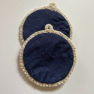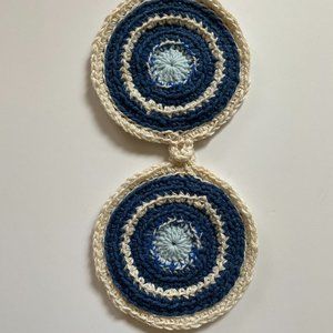 A pair of 100% Handmade round double thick crochet pot holder for kitchen use