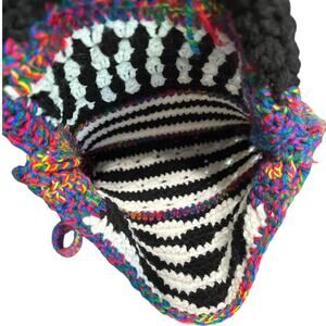 This hand-made crochet purse features a stylish multicolor black and white design with a flap closure and a long strap, making it perfect for everyday use. The medium-sized purse has a lightweight cotton exterior, accented with crochet detailing, and a multicolor lining to match the exterior. With a crossbody style and a convenient 10-inch width and height, this purse is a fashionable and functional accessory for any woman's wardrobe. Strap drop 25”