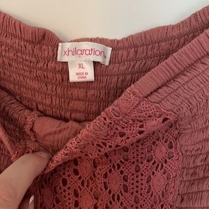 Size XL. Mauve Pink color with crochet detail and smocked bodice. From a smoke free, pet friendly home.