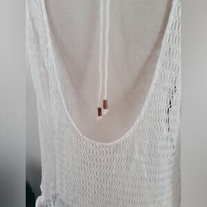 Stretchy crochet mini scoop back swimsuit cover up with ties in back