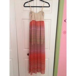 Sweetheart cut, crochet bust with a sheer skirt. Under dress is mini while outer skirt is long. Beautiful, only worn 2-3 times for special occasions. Perfect condition.