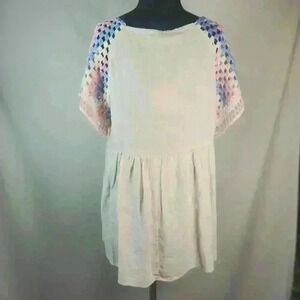 Crochet Short Sleeved Umgee USA Cream Colored Linen Blend Top/Mini Dress Large