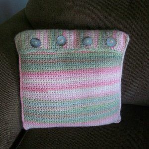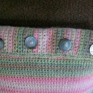 Crochet Stripe Wool Decorative Throw Pillow Pink Green Beige