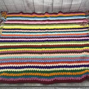 Crochet Striped Afghan Blanket Handmade 34" x 41" Couch Throw