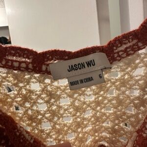 Stylish crochet top with brown and cream stripes. Perfect for casual outings.