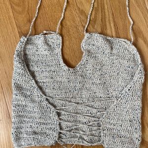 Handmade crochet top with a tie back. Tightens or loosens depending on preferred tightness. Fitted for a size small.
