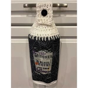 Crochet Top Kitchen Towel- Halloween when witches go riding