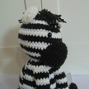 This is a homemade crocheted zebra! He needs a new home! Super cute for kids room or decoration around your home.