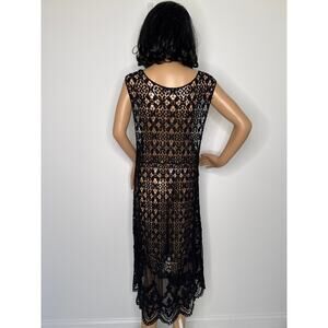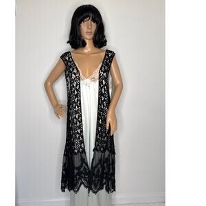 Crochet and lace sleeveless duster black origami by Vivien cardigan medium large