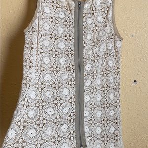 Crochet circle print cream tank, S - great as a top or as a beach cover up