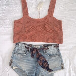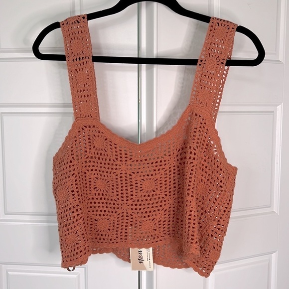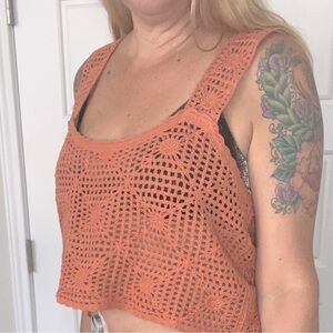 Adorable, soft, 100% crocheted cropped top in burnt orange