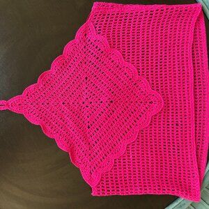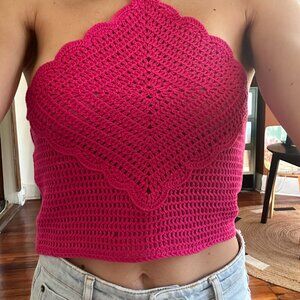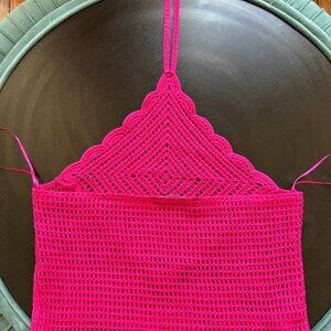 Bright pink cute crop top by Mango. Beautiful crochet pattern. Worn Once.