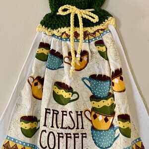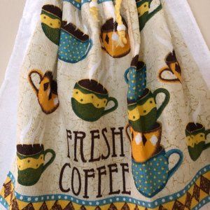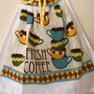 Set of 2 Handmade hand or dish towel within shape of a dress with coffee caps designs