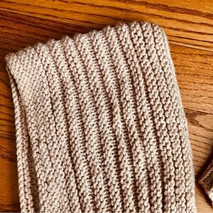 Cute, cozy infinity scarf and hat with pom pom. Made in the US.  The color is a blush pink—very neutral and will go with any outfit.