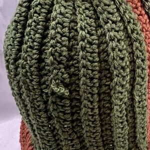 Crochet large green and brown stocking hat cap handmade nwot unisex 13" x 12"
