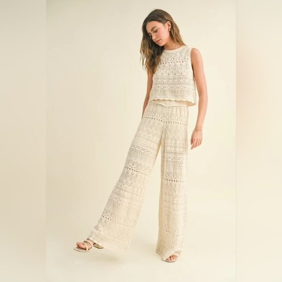 This versatile set features a unique crochet pattern. Wear as a set or mix and match with your favorite bottoms and embrace the button back closure for a playful twist. Make a statement with the set and stand out in a sea of ordinary fashion.