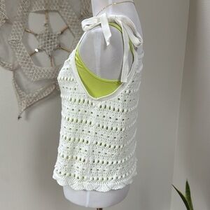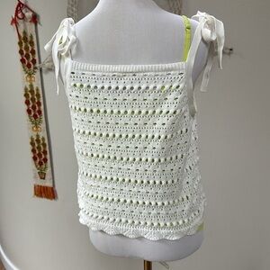 Crochet summer festival tie shoulder sweater top SZ M-L