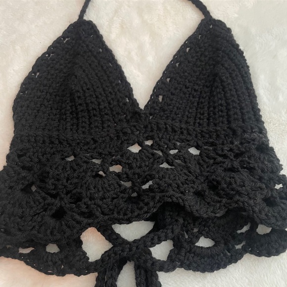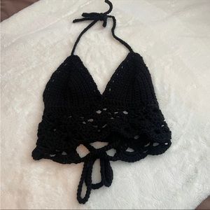Handmade black crochet knit top. Perfect for festival season! Brand new never worn. Size small but adjustable.