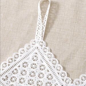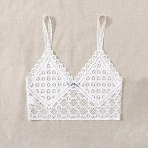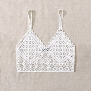 Ladies super cute white lace cropped camisole top. New with tags. Please refer to size chart to compare your measurements with that of the garment.