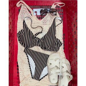 Elegant crochet sleeveless dress in cream. Perfect for summer outings.