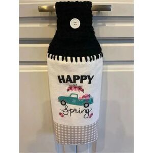 Crochet Top Kitchen Towel- Happy Spring