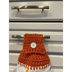 Handcrafted crocheted top kitchen towel made by everyone’s favorite Gigi! This is the entire towel, which makes it still very handy to have in the kitchen while still serving as a decoration.
