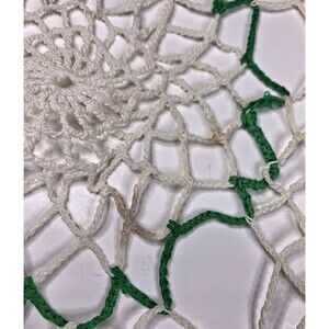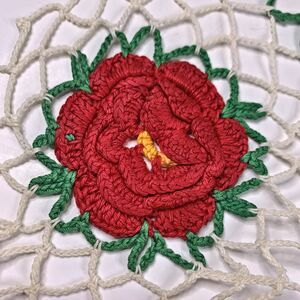 Crocheted 3D Rose Lace Doily White Red Green Flower Cottage Core Granny Vintage