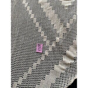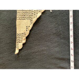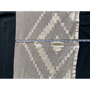 This vintage crocheted mantle scarf features an intricate geometric pattern, evoking the elegance of yesteryears. Its generous size ensures it covers a substantial area, adding a touch of nostalgia to any room. The craftsmanship showcases a traditional art form, making it a timeless piece for collectors and enthusiasts alike.