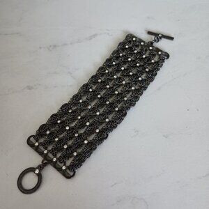 Crocheted Chain Bracelet Gunmetal Finish and Rhinestones with Toggle Clasp
