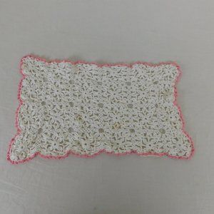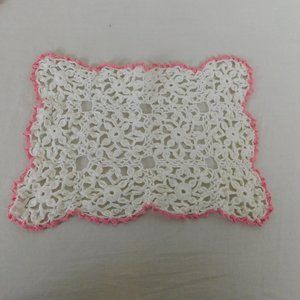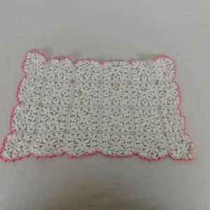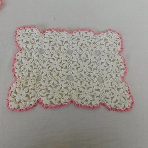 Crocheted Doilies Lot of 4 White Rectangles Pink Border Vtg Cottage Shabby Chic