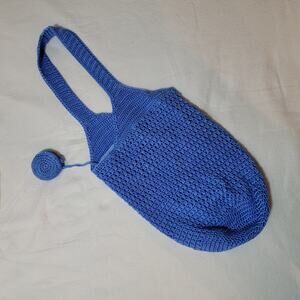 Crocheted Market Bag Mesh Tote Knit Blue Coquette Cottage Casual Traditional