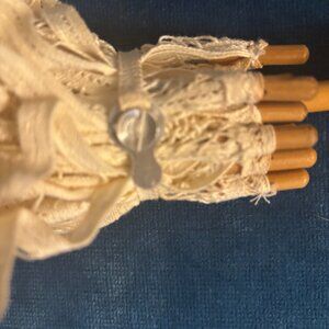 Well it isn't going to keep you very dry but it sure is pretty! Quality workmanship, cream in color and standing 21" tall. It has a strap to keep it closed as shown and it is clean and in excellent condition.