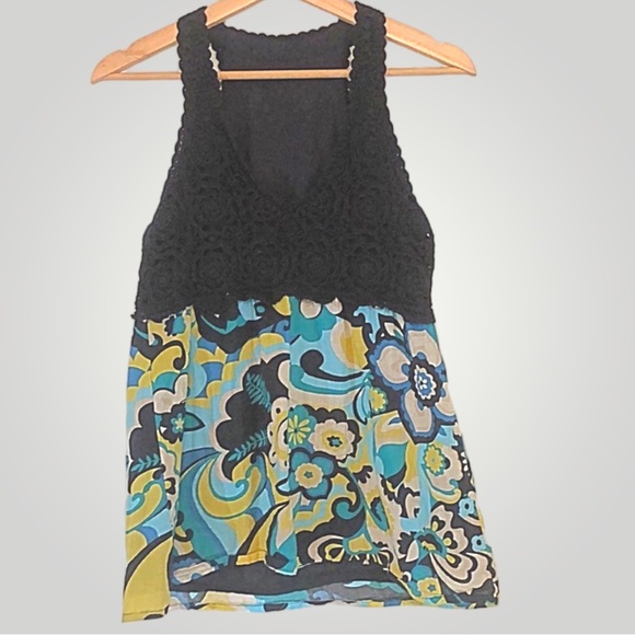 Crocheted Racerback Paisley Print Tank