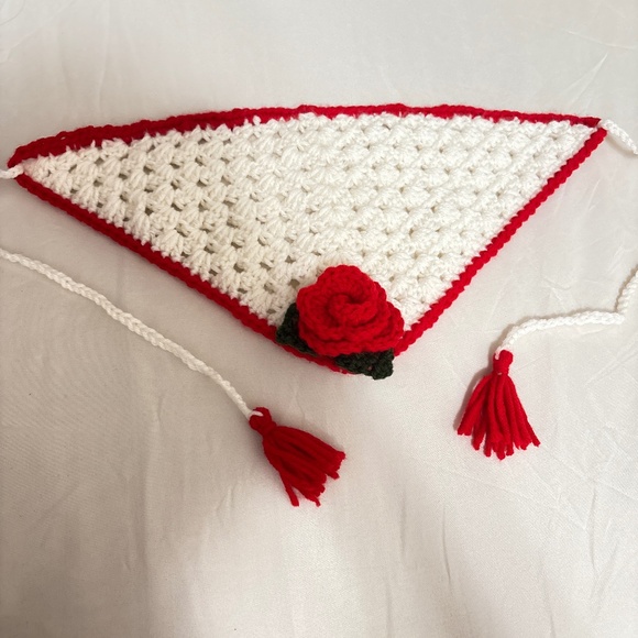 Handmade Using Ivory, Red and green 100% Acrylic Yarn